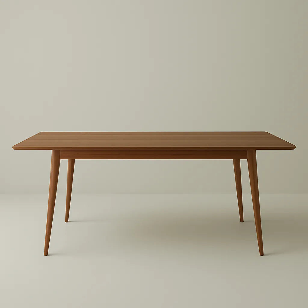 Celebrate simple form with this mid century dining table featuring tapered leg and rounded edge...