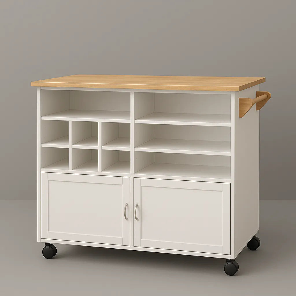 This kitchen cabinet offers flexible storage with multiple open compartments and closed cabinets. The solid...