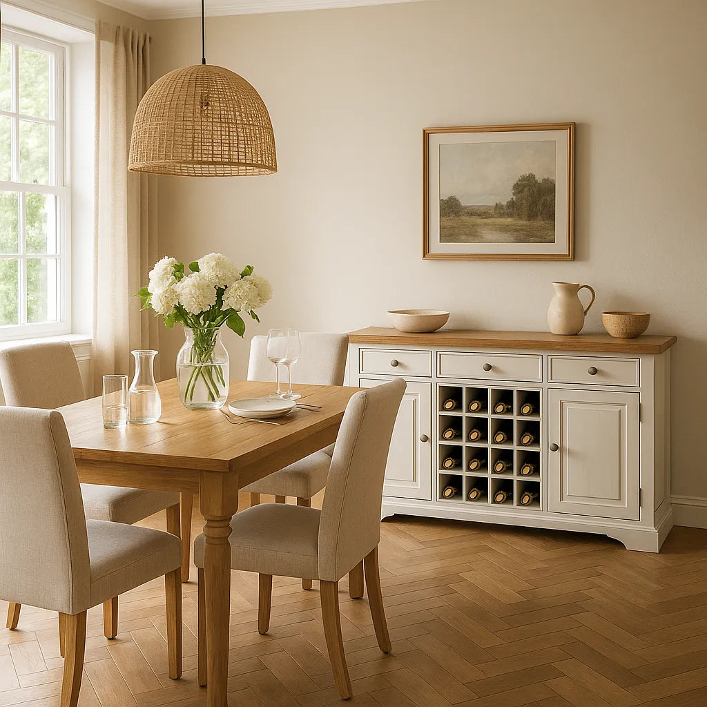 Most pieces are made from solid oak, walnut, or ash. Wood selection may vary by product.