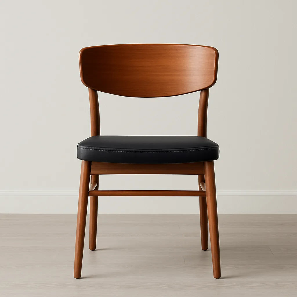 Upgrade a dining space with the mid century dining chair, a fusion of retro charm and modern refinement. Designed with a wide curved backrest and cushioned seat, this chair supports comfort for an everyday meal or formal gathering. Sleek line and warm toned frame add timeless appeal, while a black seat cushion introduces bold contrast that fits both classic and modern interior. The chair structure offers stability, making it stylish and suitable for long term use. Whether placed beside a dining table or used as an accent in a living area, it brings a sense of balance and quiet sophistication. A compact footprint makes it fitting for an apartment or cozy dining nook without taking away from style. The mid century dining chair serves as a versatile piece that shapes the interior with refined proportion and practical design.