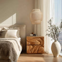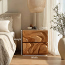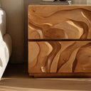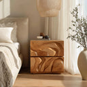 The drawer fronts are intricately carved to create soft, fluid contours reminiscent of natural landscapes. This sculptural texture transforms the nightstand into a functional work of art, adding visual richness to your space.