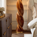 Sculptural Twisted Solid Wood Floor Lamp For Bedroom & Living Room